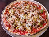Pepperoni, sausage, mushrooms, meatballs, onion, peppers.